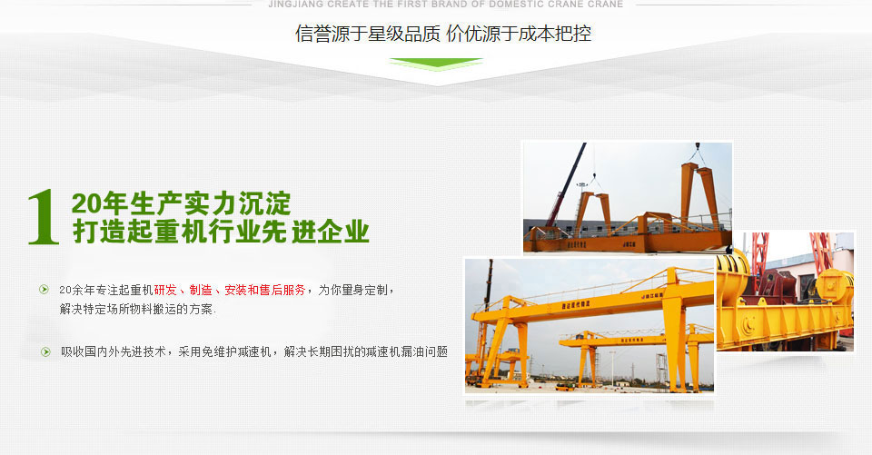 靖江市起重設(shè)備廠家直銷懸臂起重機、固定式懸臂起重機、單雙梁橋式起重機、簡易門式起重機、電動葫蘆門式起重機型號齊全,價格合理 - 座落在美麗富饒的江浙平原,魚米之鄉(xiāng)--江蘇省靖江市,位于長江之濱。毗鄰江陰長江公路大橋, 與江陰、張家港隔江相望,緊鄰上海、南京、蘇州、無錫等發(fā)達的大中城市,經(jīng)濟環(huán)境和地理位置得天獨厚。 緊靠京滬、寧通高速公路 公路和水路交通極為便利。